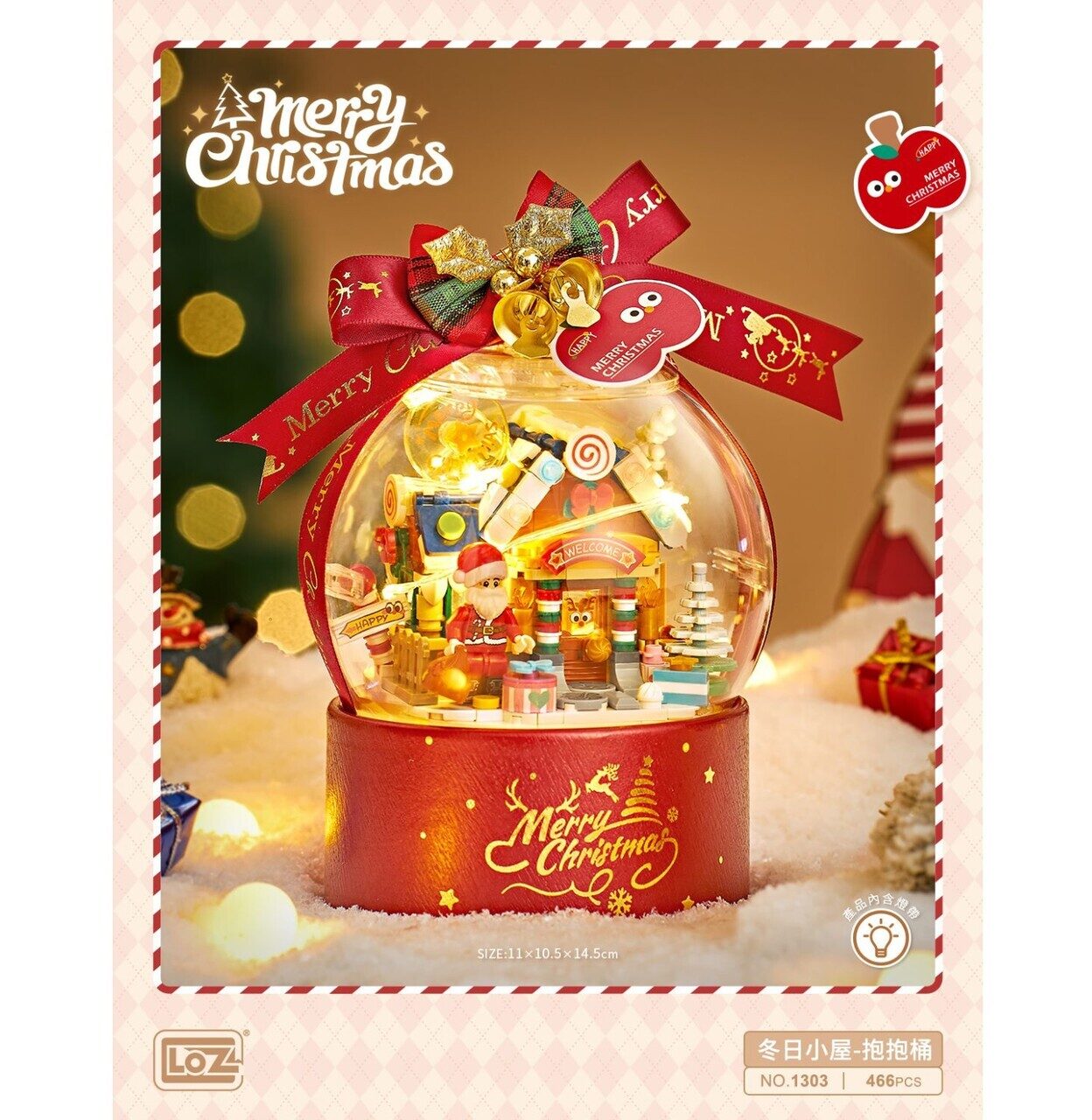Конструктор Loz 1303 - Новогодний шар Рождественский домик со светом